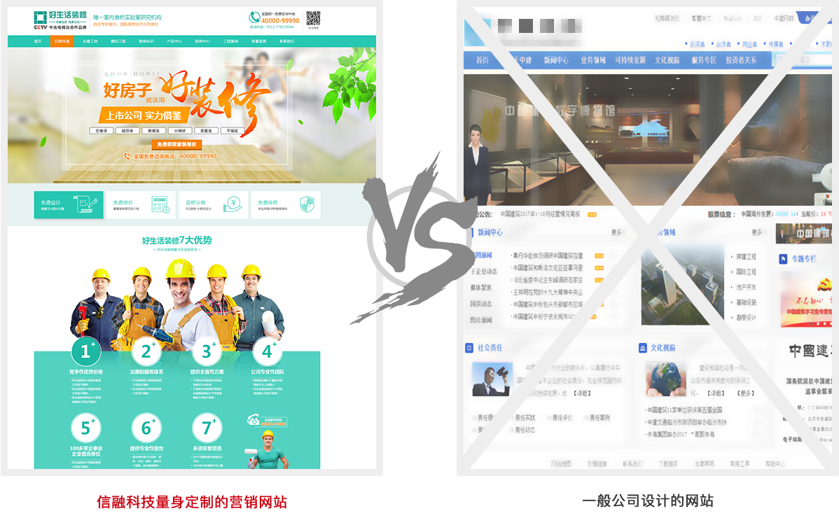 这两个网站您更愿意在哪个网站多停留?传统模式的网站已经落伍了!信融科技为您私人订制网站助你成功!